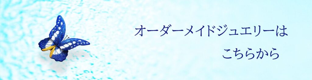 蝶のアートジュエリーは、その時の装いに合わせて羽をたたんで本物の蝶をつかむように肩や指輪に止まらせます。