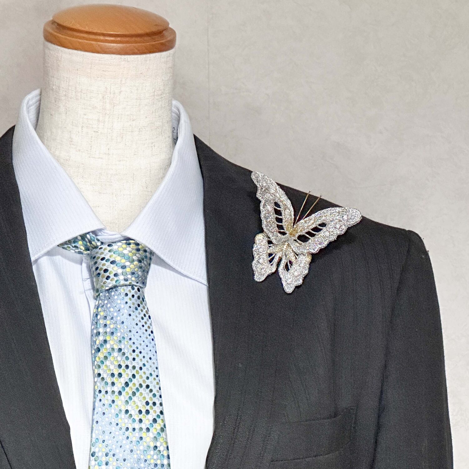 * 蝶のブローチといえば、女性がつけるのが一般的ですが、男性が身に着けることも素敵なアクセントになります。